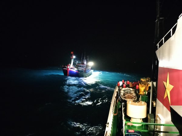 Trước đó khi đang trên đường hành trình tuần tra, kiểm soát khu vực Tây Nam đảo Phú Quý, tỉnh Bình Thuận, tàu KN461 nhận lệnh của trên đi cứu kéo tàu cá NT 90974 TS bị hỏng máy trôi dạt trên biển tại tọa độ (Vĩ độ 10003’00’’; Kinh độ 108054’00”) cách Đông Nam đảo Phú Quý khoảng 30 Hải lý.