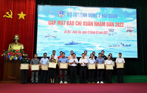 Dịp này, Bộ Tư lệnh Vùng 2 đã tặng Giấy khen cho 24 cho phóng viên có thành tích tốt trong công tác tuyên truyền biển, đảo năm 2021.